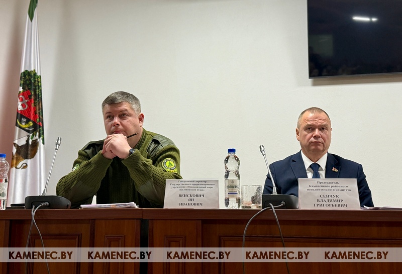 Глава района Владимир Сенчук, выступая перед коллективом нацпарка, спроецировал основные моменты, которые легли в Программу развития Беларуси, на Каменецкий район.