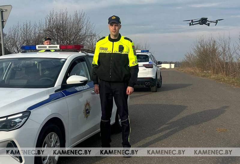 Сотрудники Госавтоинспекции Каменецкого РОВД осуществляют обеспечение безопасности дорожного движения при помощи дрона.